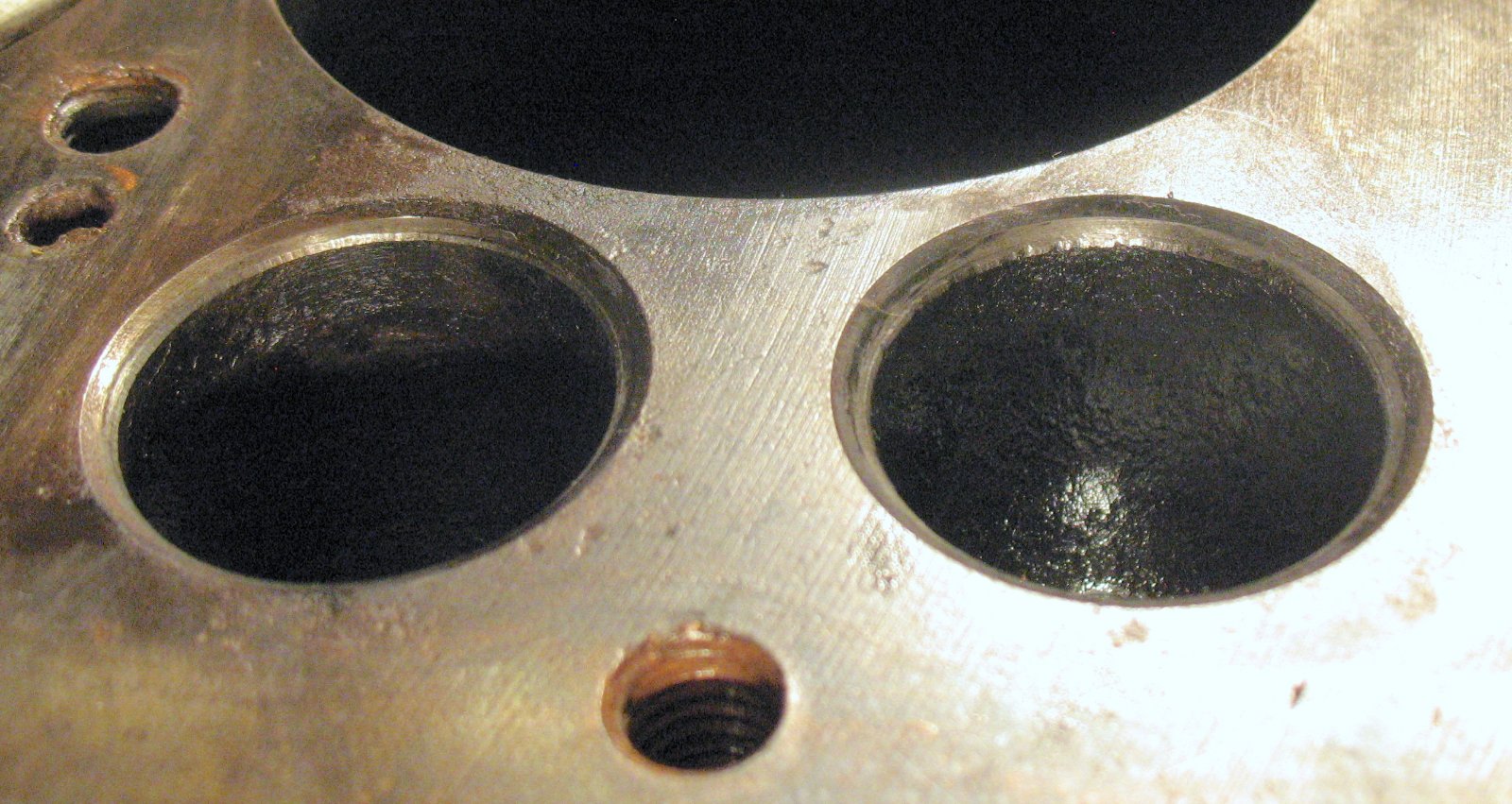 OK, I don't know if the pictures are good enough to show anything, but here are the valve seats. There are two shots at each cylinder, one from straight above and one from the side.