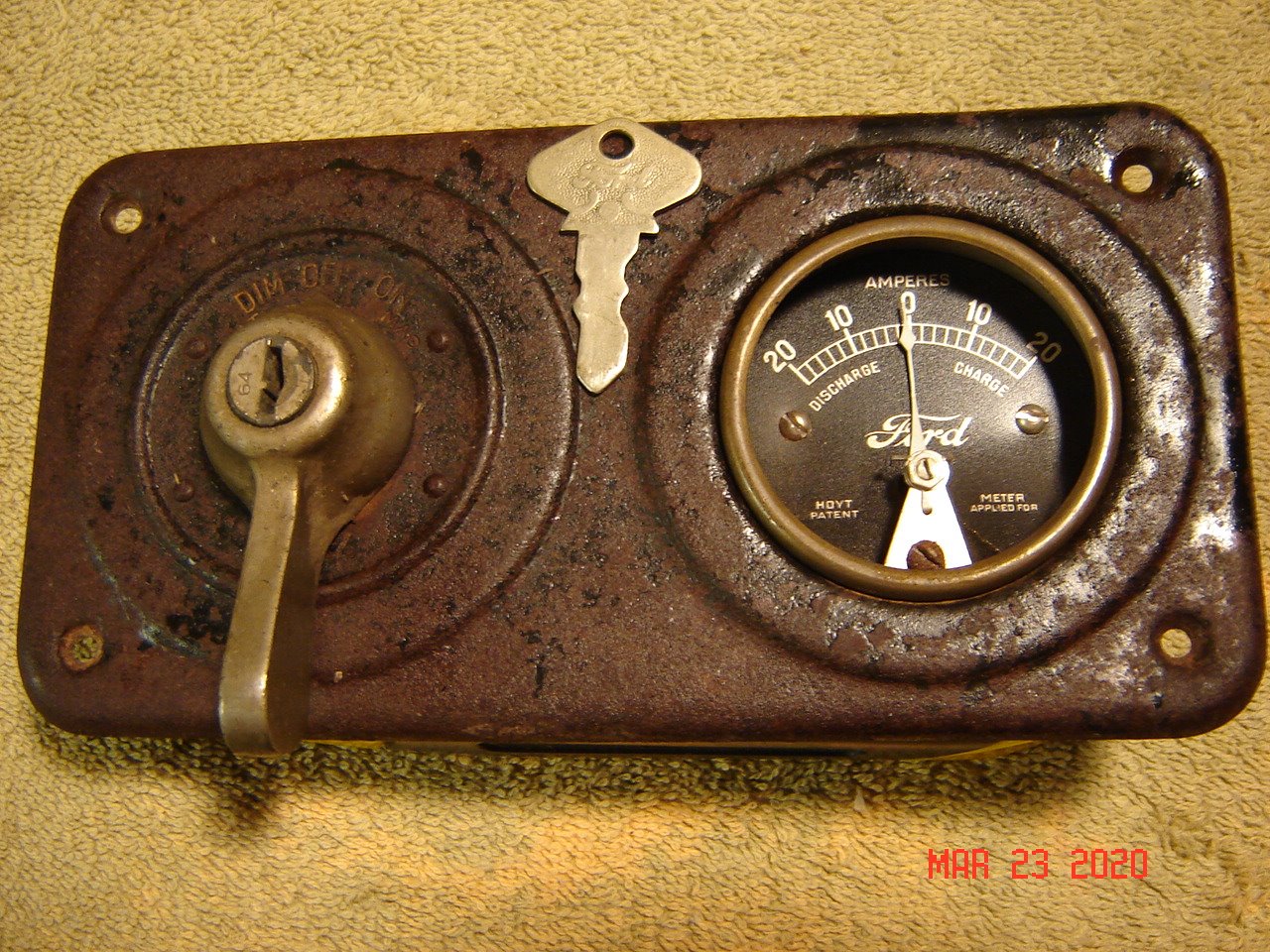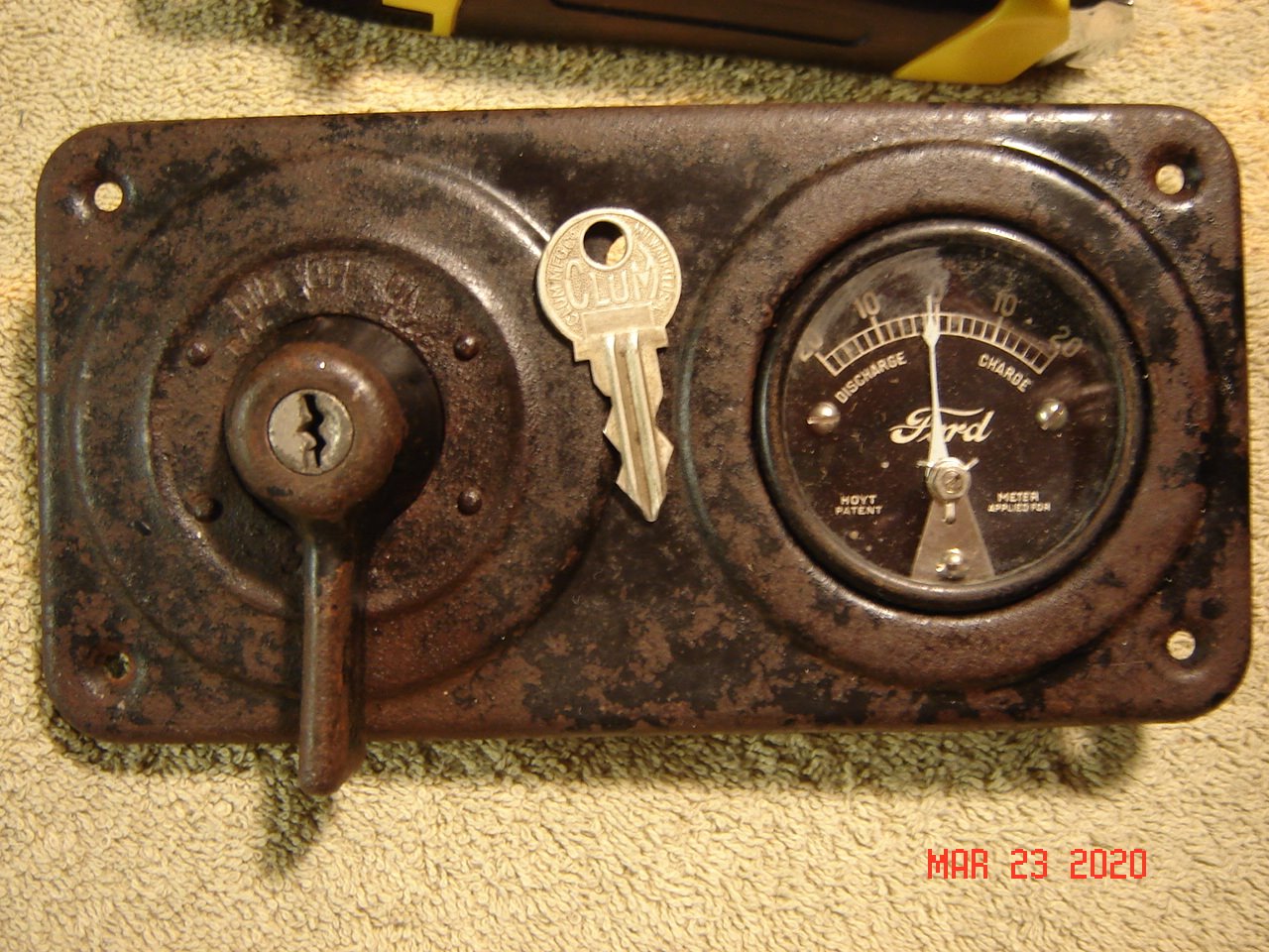 I have a very early Clum switch with the round head key. It has a lower number than the usual Ford keys. Here is a photo of a members early 1919 with the type switch I have. The dash boards were wood and covered with top? material.