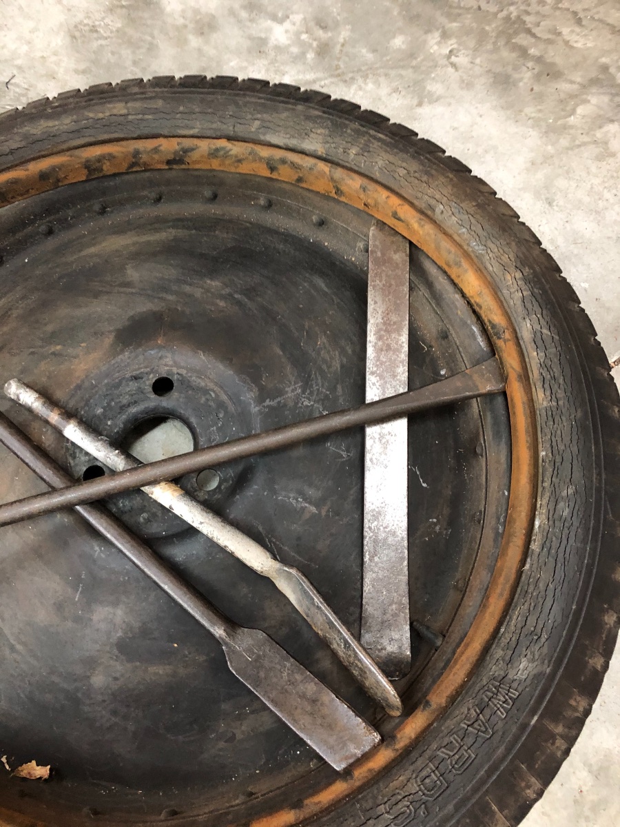 I rolled the T out of my barn, jacked it up and swapped wheels without difficulty. A quick check showed it ran fairly true so it was time for a test drive. I turned the engine over a few times with the crank to free it up and it started on the the second try. Not bad after sitting for over three months.