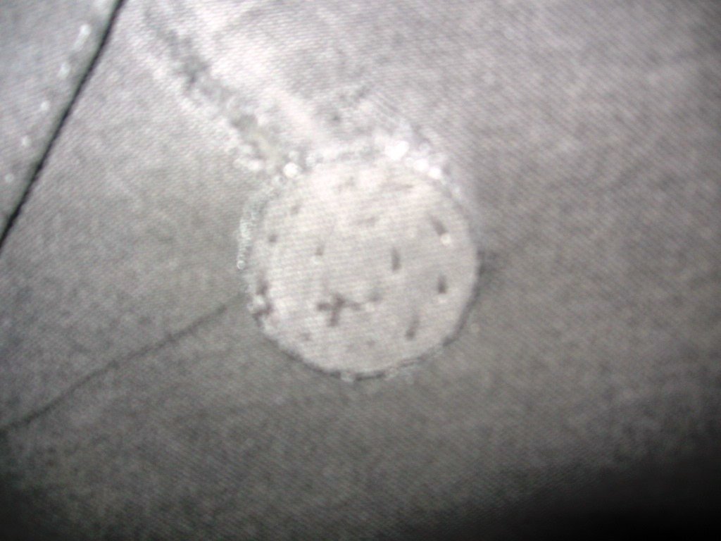 So today, I glued and sewed a small patch onto the inside of the curtain where the abrasion takes place. Not so much to plug the hole, rather to provide a fresh wear surface to keep the hole from getting bigger.