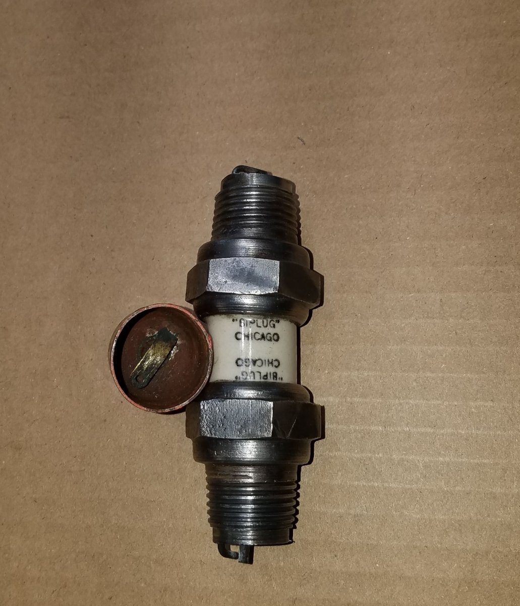 Thanks for posting - I've collected plugs a long time and have several varieties of those double ended plugs in my collection. They are oddities for sure and are sought after by plug collectors. Here is an example of a very early one with a mica window in the removable cap. It's done that way so you can actually see the spark jump. Theoretically when the spark jumps an air gap, it actually intensifies the spark. Supposedly that would help burn off any deposits. Looks like it's in pretty nice condition with the original cap.