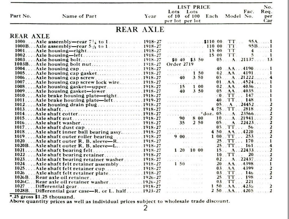 I would guess by the fact that some of the numbers are A and AA that this is from the 1928 parts book. The early AA worm drive had some parts in common with the TT.