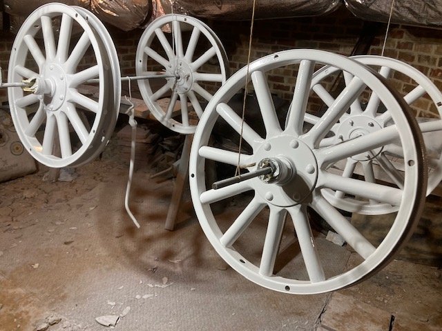 Wheels are sanded and in position to paint. Will do some small void filling and begin painting.