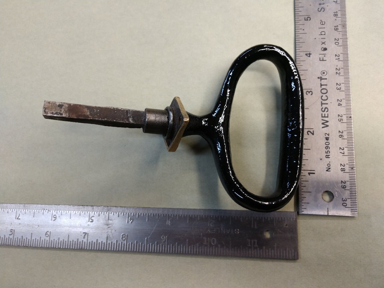 Don, Something in My memory brain is telling me it is Stanley works. ( Stanley hardware) They were a huge hardware supplier back then, and likely an off the shelf item for the builder. A search of cartouche marks on the interweb may be worthwhile.