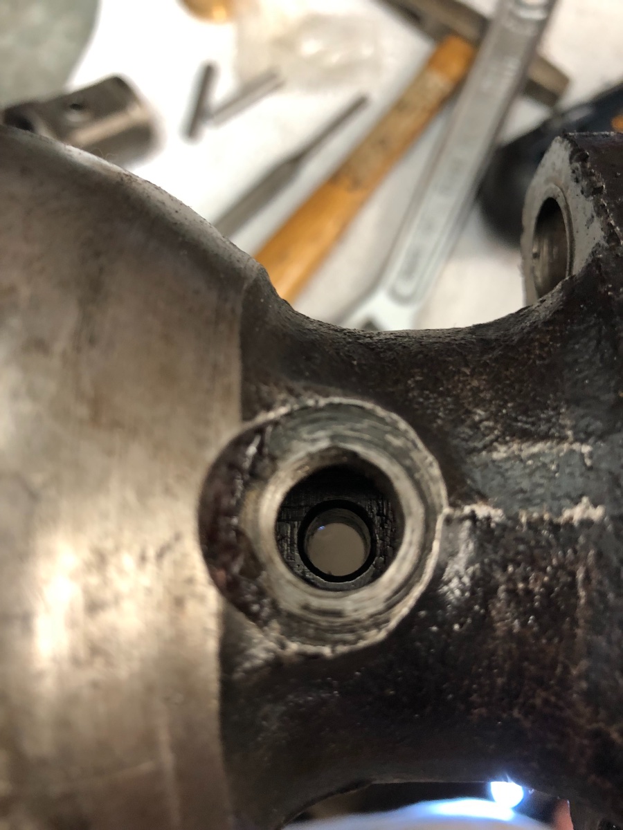 Just assuming the u-joint was original and was in original drive shaft. The rivet pin could have been fractured over time if it wobbled in a worn drive shaft hole. Assume you checked the i.d. of the drive shaft hole for roundness and fit of a new rivet pin. They have to fit snug on insertion, then rivet over the ends to retain that pin.
