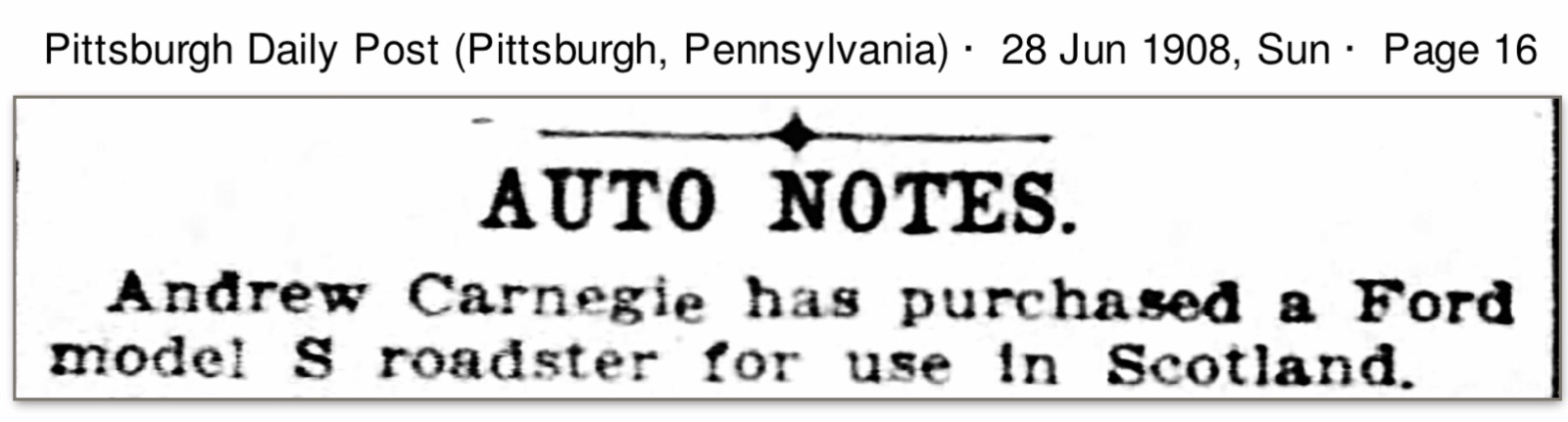 Interestingly, there were at least two other reports of wealthy folks from the U.S. shipping their Model S Roadsters to Europe for touring in 1908. Below is another example of a fellow who could afford cars other than Fords doing the same: