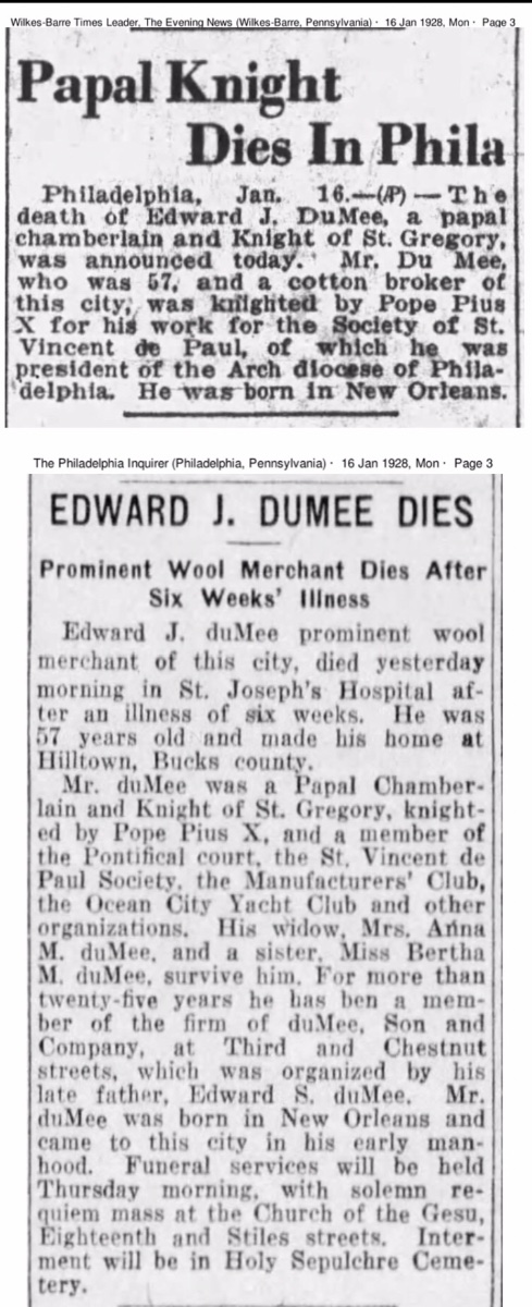 Edward J. Du Mee was a wealthy cotton merchant in Philadelphia at the turn of the last century.