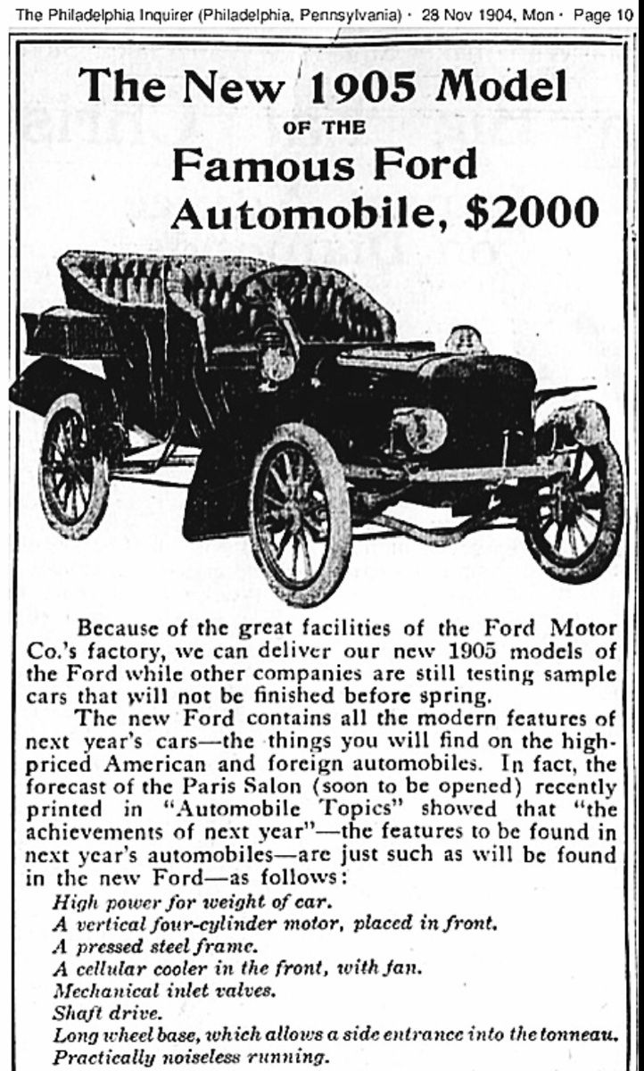 Closer view. As with later Ford’s and the Model T, Ford is touting the light weight, and high horsepower to weight ratio, shaft drive and other features. Most cars of the time were chain drive, and none in this price range had four cylinders. At the same time this ad runs, Ford is also completing his six cylinder racer, whose power plant will be the “next generation” of Ford’s large cars.