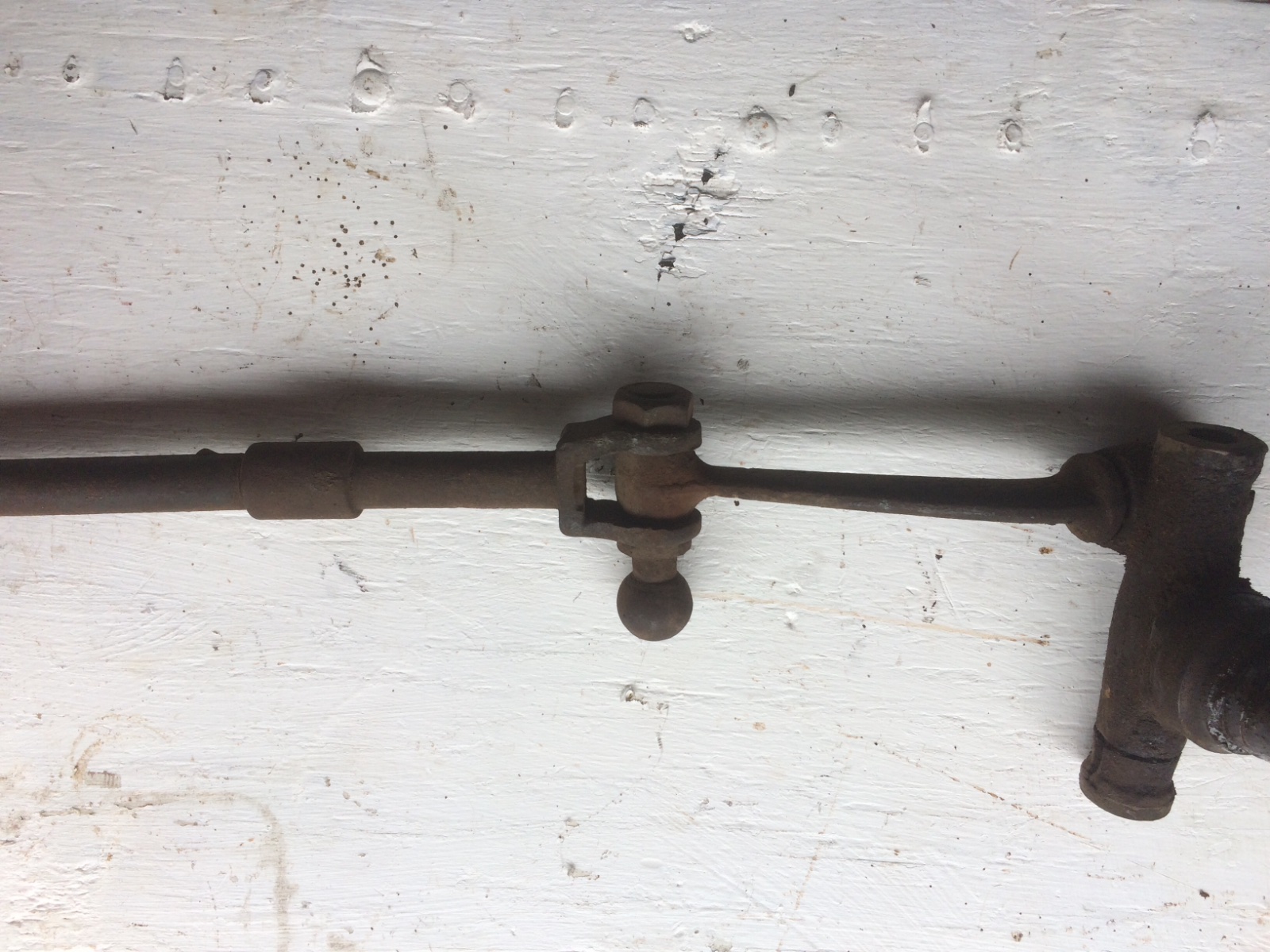 That whole end is strange. Could have been for some special purpose, maybe a trailer anchor to lock the wheels straight? Or a steerable trailer tongue? (I have one of those rigged up for emergency towing of a model T.) It also could have been something simply available to repair a broken end on the tie-rod. It looks like a standard type end buckle attached (threaded? welded?) onto/into the cut off tie-rod. Remember, the early tie-rod as Ford supplied had the ball end permanently attached to the "knuckle" (for momentary lack of a better word) which was all permanently attached to the end of the tie-rod. If that end of the tie-rod were to be somehow broken, or worn through for lack of proper oiling, a rancher way out may have not had a proper replacement and would have used whatever piece from some other machinery he had to make a repair. While certainly under-strong, that repair could have worked for a couple years, and at least got him into town or a neighbor's place for a proper replacement tie-rod.