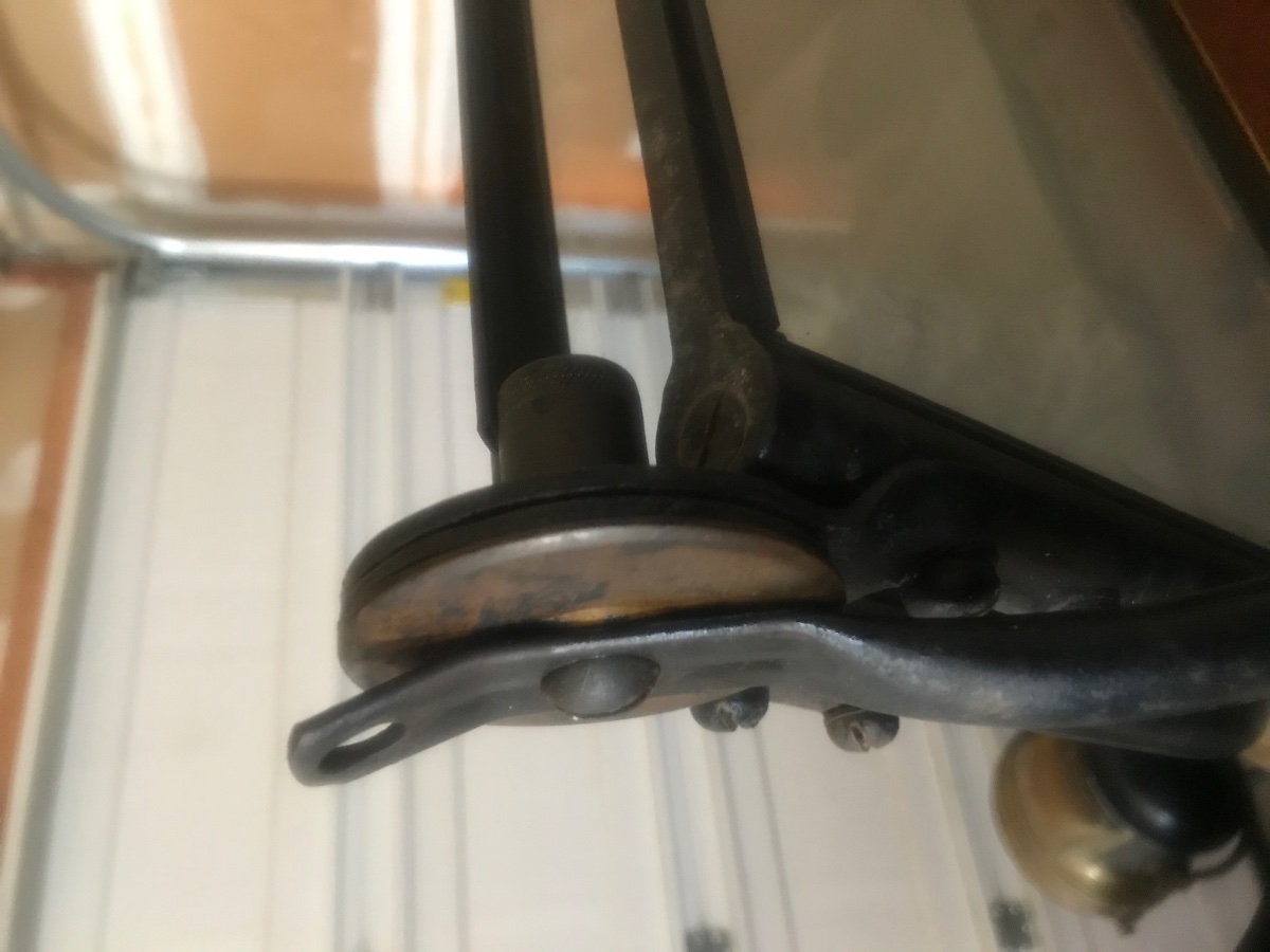 Both of my '13s have Rand's windshields. They have a stud that goes through to the end with a cotter pin hole for a castle nut, which enables the owner to adjust the tension on the spring. The nuts are brass plated steel. I like to use a brass cotter pin for these.