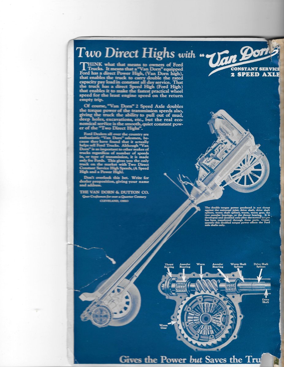 While looking through my Ford Owner and dealer magazines for more Gould ads I found these for the Van Dorn two speed axle for The Model TTs. This one is interesting in that their 2-speed unit fits inside the factory rear axle housings. This is another one that I've never heard of before and never seen. These were advertised from July of '26 until at least June of '27. Could be longer but the June issue is the latest that I have. They shrank that final ad down to a black and white, quarter page ad so I'm guessing they were running out of funds. It's hard to imagine that the company advertised for more that a year without producing any axles. So, same question as my Gould axle post. Has anyone ever seen one, owned one or know anything about them?