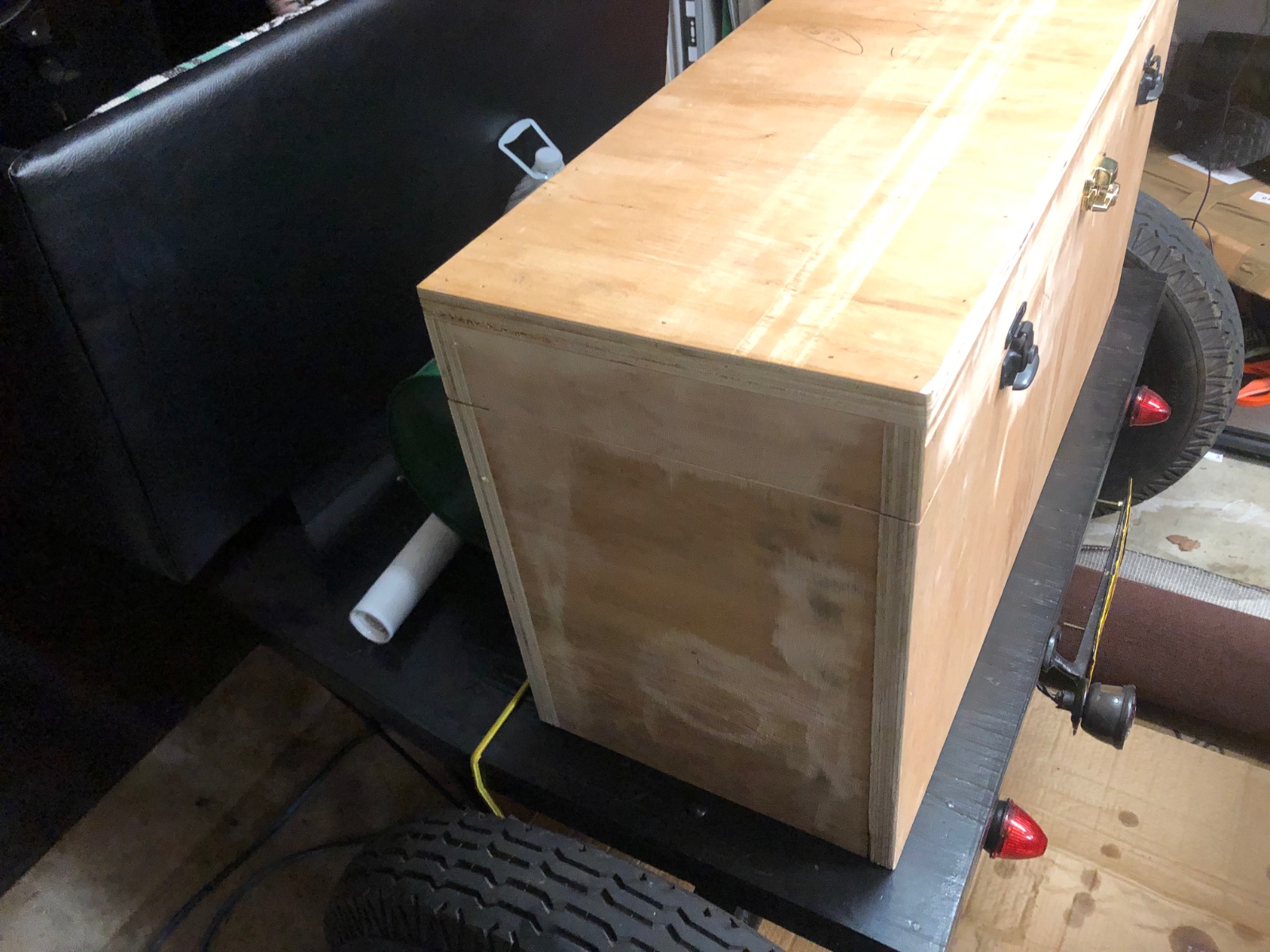 Looks great Brad. You will be able to go on long trips with that box. I do not think it looks too big. Just keep an eye on that hinge if it is not solid brass.