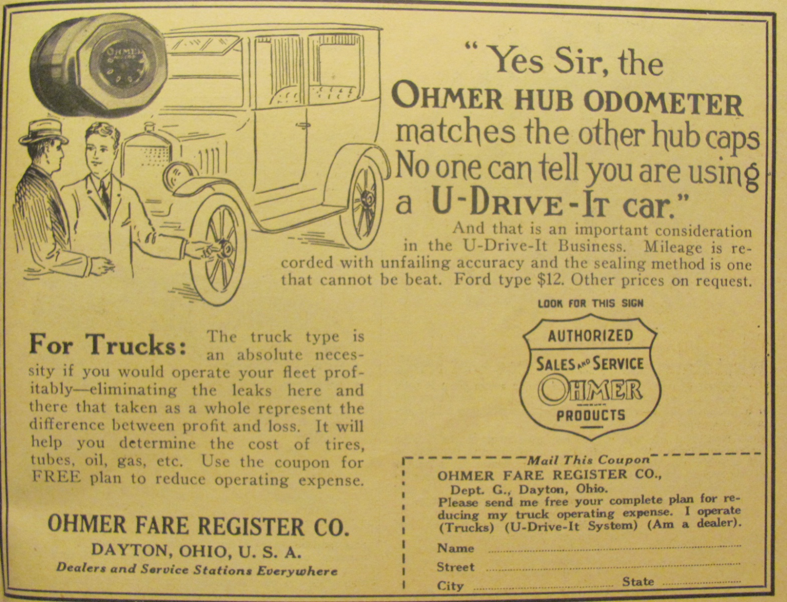 Old story goes; Joe goes to the rent a car at the stable that has seen the light and is now renting cars as a side line. Now Joe is a smart one. The car has a hub odometer because it is rented by the mile. When Joe gets out of sight of the stable he stops and swaps out the odometer for a stock hub cap that he just happens to have and goes on his merry way. Later that day he brings the car back after putting a few miles on the meter just for good measure. The conversation goes something like this; looks like you drove 10 miles, that will be $1.50. Ya didn't go far, just out to Aunt Beth's place. Truth is he had been to county seat over 40 miles round trip.