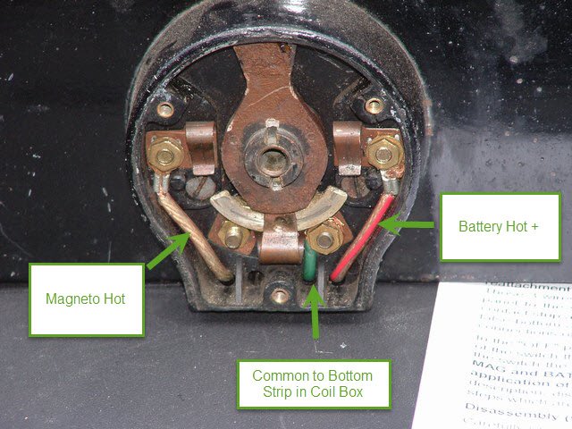 I am putting together a 15 coil box and switch Lang's parts book shows three wires one going to mag one going to bat and one going to Common where does the common wire hook to I've never tore one of these apart so I have no idea your help would be appreciated thank you