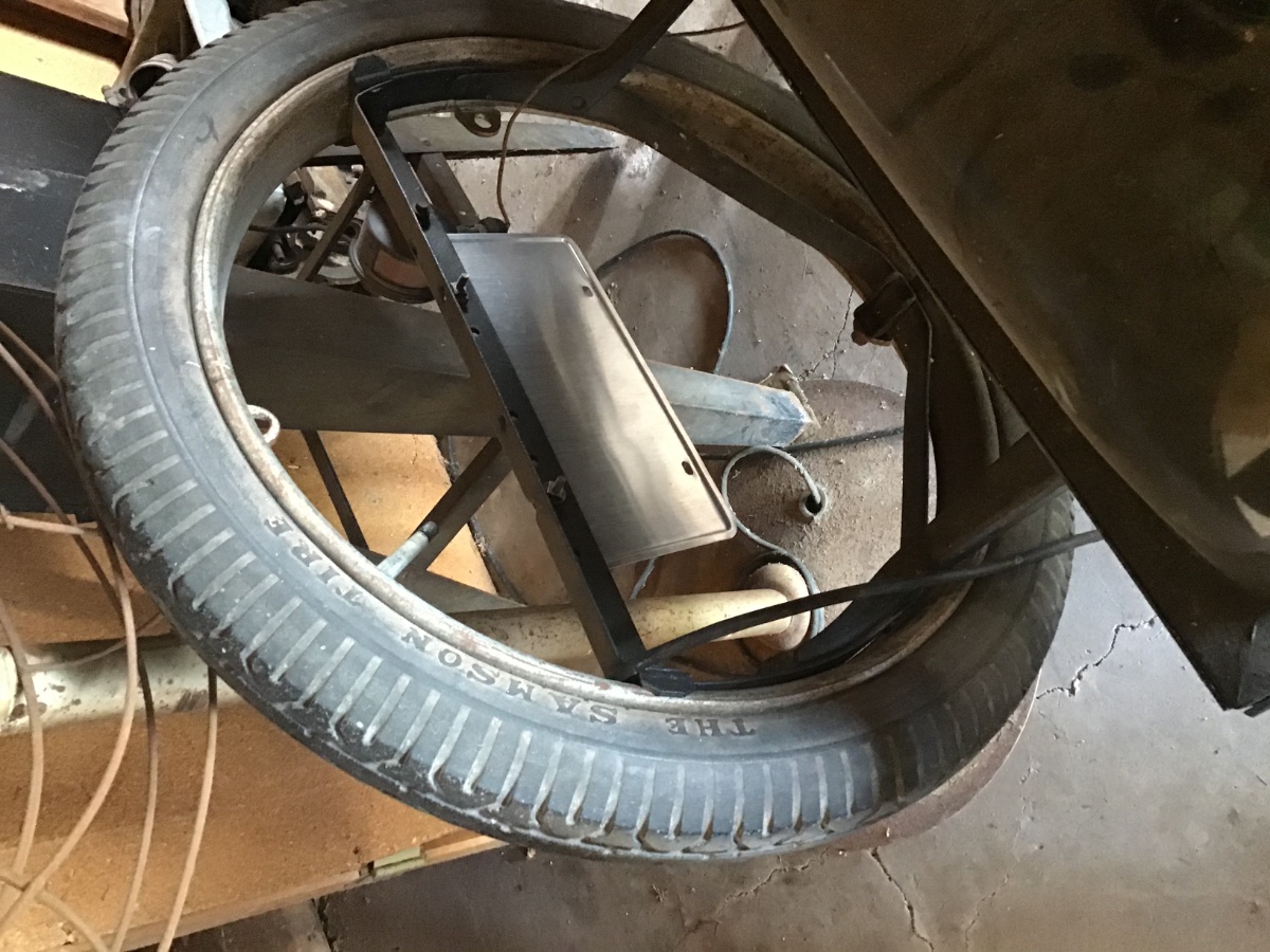 Since the subject is ‘old tires’ here’s my contribution. This is my spare on my 1919 roadster. Another neighbor gave it to me in the late 70’s when I started gathering parts for my 1919 roadster. It’s a Samson which has probably been on the rim for at least 50 years. It was hard when I got it and surely still is.