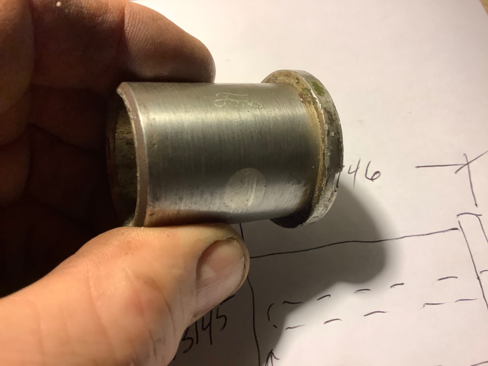 Ok, probably TMI but here goes. How many have plucked these babies out of a driveshaft and just threw them in the scrap? I looked at my cosmolined NOS one today, and had to degrease it. This is ford script. A steel shell, with a babbit rim and lining. What I found interesting is the single grease groove stopped short from the end. Also, the spot for the grease hole is in the steel shell, which would make it easy for the mechanic to install correctly, right side up. Grease groove and grease hole up. An easy drill for the mechanic through the babbit for the grease hole. Best of all, this original style would limit oil travel8mg back to the rear axle. Ok , TMI but I thought pretty neat.