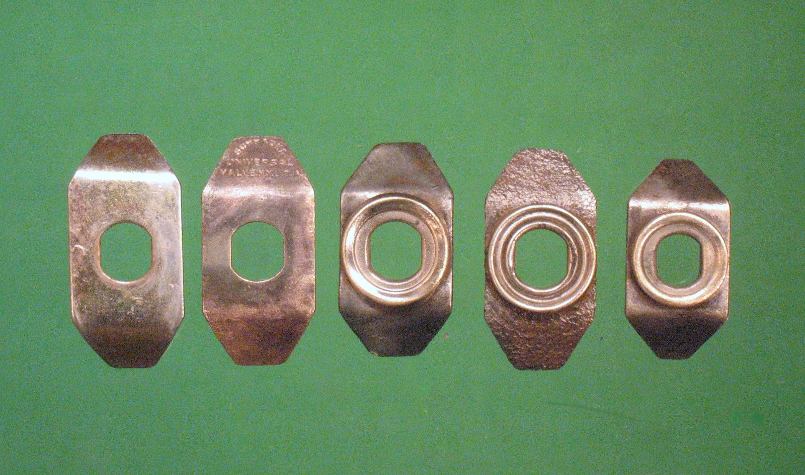 I think I posted a photo of the second to the left Schrader bridge washer recently, along with the separate washer that went under it. Just after that, Schrader began to crimp the washer to the bridge washer. The sequence is pretty clear looking at the rest of the bridge washers posted.