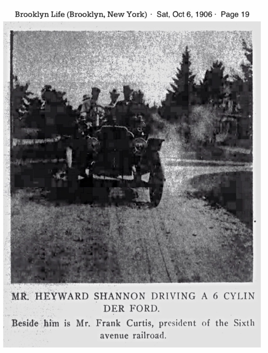 This is my candidate for “first Ford speedster.” Heyward Shannon, a young Princeton graduate, bought one of the first Model K Fords in 1906. This photo shows he and his wife and friends driving one of the first Model K. The “humpback” radiator give it away as one of the first dozen or so Model K sold in 1906. It’s reported only nine or ten Model K had this first radiator, before the tank was expanded under the hood: