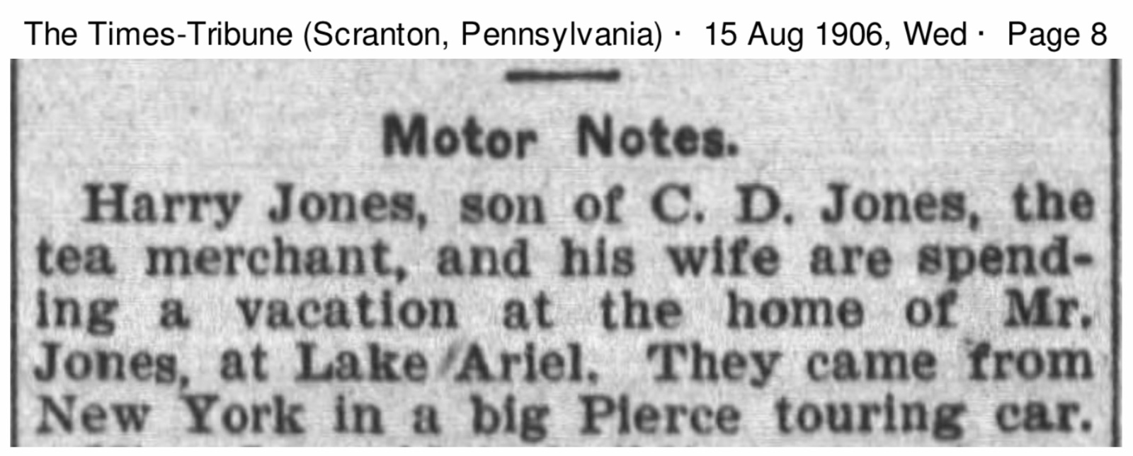 When I work on these “stories,” the location and newspapers are critical. Some newspapers and reporters wrote extensively about “motor cars.” Some newspapers, not so much. As a result, cities like Scranton and her newspapers reported extensively about the new fangled contraptions, and make it easy to document auto owners and their experiences.