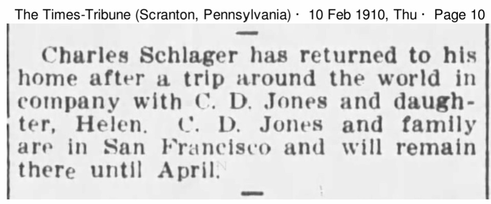 The Jones returned from their early 1911 five month tour of the Holy Land and Europe. They took an automobile and chauffeur with them, motoring through Europe. Unfortunately, I wasn’t able to determine which car they shipped: