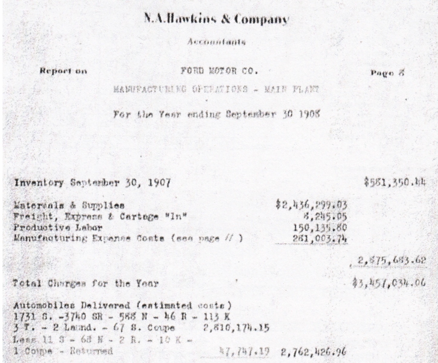 On another page of the audit, production records indicate three Model T and two “Laund” were produced (as well as 67 S coupes):