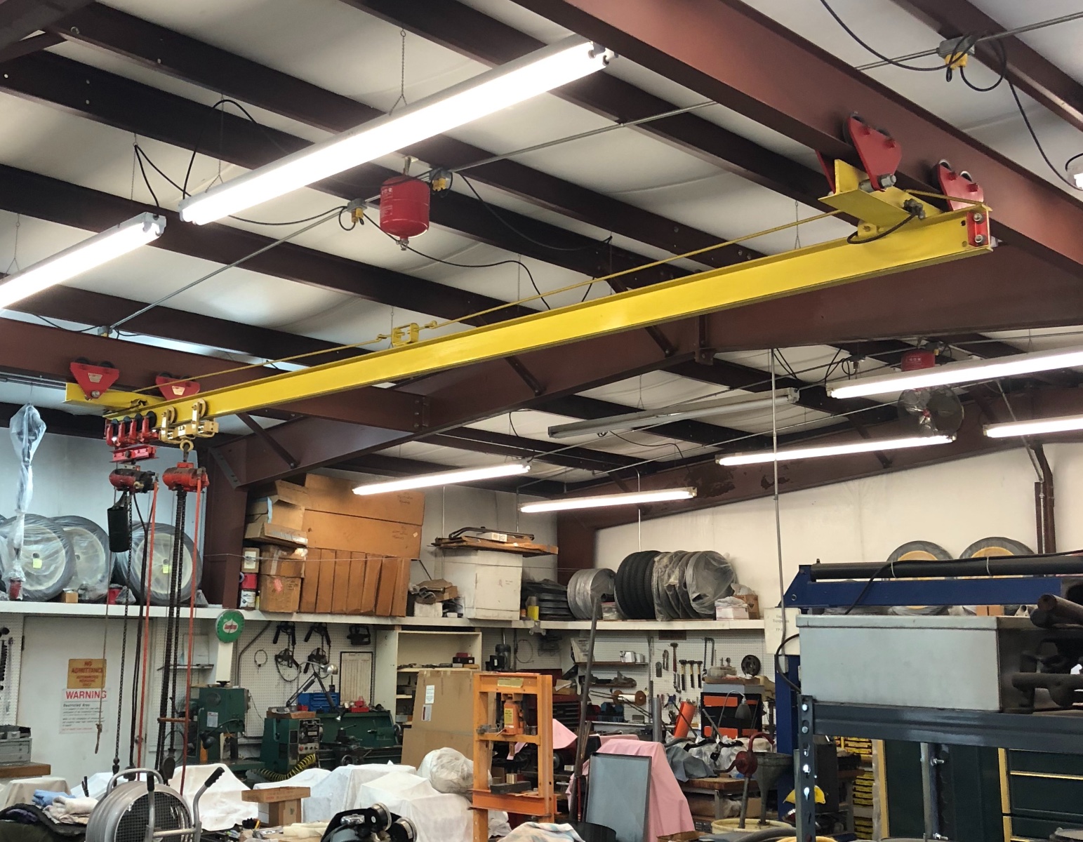 Years of seeing and doing without, I had ideas for my dream shop to include an overhead system to assist me. Since I am by myself about 95% of the time, it sure does do the job. Will lift a ton easily.