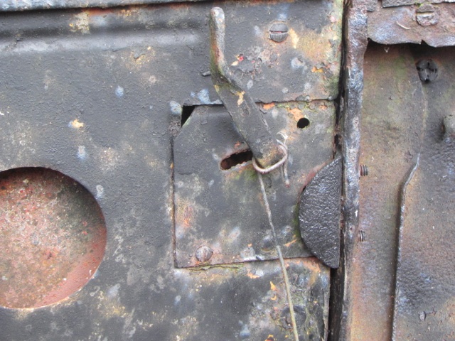 Here is the '27 version, easy to spot with the clipped top corner. This one has hole for the upholstery nail socket, for the trim board on the door and the latch tucks into the door panel opening.