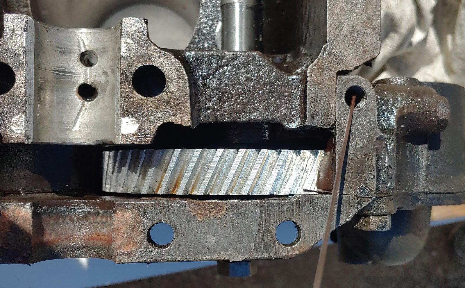 - Blocked threaded hole below camshaft
