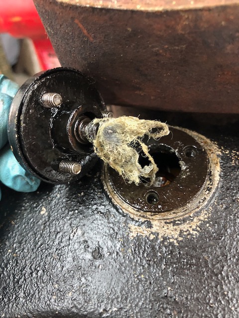 When there was much fuzz in the oil screen too, at first glance when I got this project, and spied fraying at the ends of the brake lining too, and finding this amount on the mag post (the magneto was working fine), your first thought is drums, drums, drums