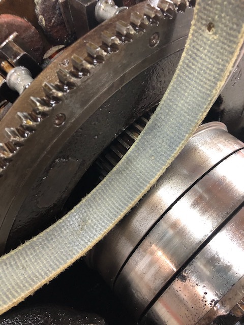 Low speed, ah, some fraying on the edge....near the brake drum. The low drum is poor too, has some pitting, one pit still had a fray of Kevlar!.