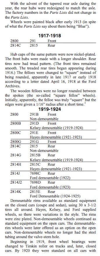 Different-sized front and rear tires are for 1909-1919. BUT after 90+ years many of these cars are wearing different wheels than the ones they were born with.