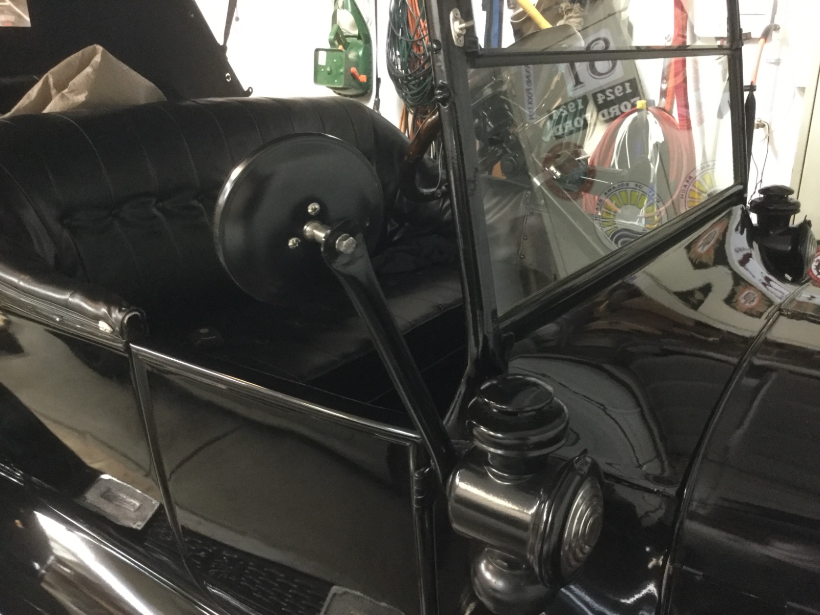I currently have a chrome clamp on mirror for my 23 roadster, but it constantly scratches up the windshield post. I thought about getting one that screwed to the post but I'm afraid if it's bumped, it'll damage the post. I guess I could live with the clamp mirror but I can't stomach the chrome and they don't seem to make a black one. Is there a source for a black hinged type mirror that looks period correct?