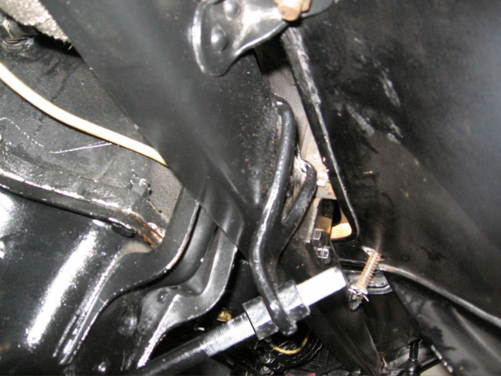 Here's the one on Betsy, my 1924 cut-off touring. I installed it because one of my pan ears had a weld repair and I wanted extra support in case the weld ever failed. Note how the nuts firmly clamp the hooks onto the threaded rods to prevent relative movement that can cause the hooks to rub a groove into the rods over time.