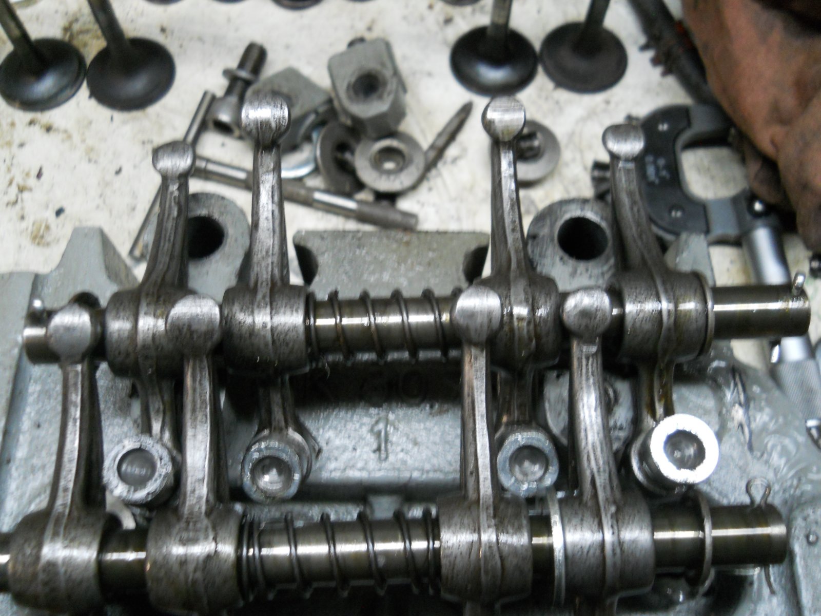 Just trying to help with experience and knowledge gained. Those rockers in my opinion do need to be polished up. Minor rust pits, looks like one has been on a belt sander (cross sanding), etc will cause drag with relative pressure. From your first pictures the high soot and lack of contact on the middle valve is a give away of this occurring. When you redress them and polish, you will notice a big difference!