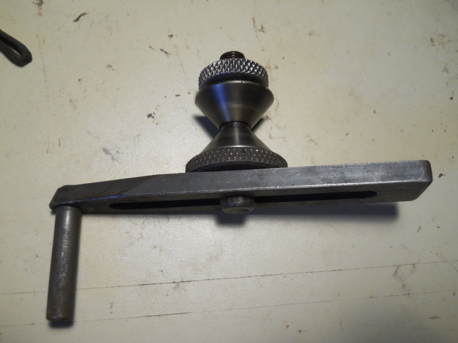Few more photos. The Black & Decker holder for doing rocker arm pads and how I did the bosses. I am still working on freeing the adjustable cone on the rocker arm holder. I don't think it's threaded, if it was, there would be a flat knurled area to turn it. Tried a little heat and paraffin but she no move. The knurled piece at the bottom is not attached to the cones, it clamps the center shaft to the bracket, the top one is not attached ether, it locks the adjustable cone in place after the rocker is installed.