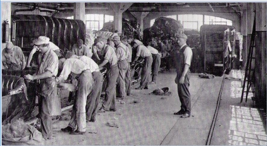 As Trent mentioned in a different thread -- there is not a nice correlation between the body numbers, engine numbers, car numbers (ok car numbers were the same as engine serial numbers up until Oct 6, 1911 for USA cars ref http://www.mtfca.com/encyclo/doc11.htm -- note they used the term body number and they should have used the term "car number" i.e. the number on the ID patent plate. Note for Canadian cars the engine number and the ID patent plate/car number continued to match well into the 1920s). There are numerous reasons why that is the case. However, so far with the Beaudett body numbers the most I have seen them off from the engine number was about 6 months (I would have to look it up and I do not have time to do that). And in that case we know the body was about 6 months older than the car. But it was a very original car that still had the original upholstery and the upholstery was the 6 months or so later style upholstery. My guess and it is only a guess, is that for some reason that body was not run through the upholstery shop and installed on a car for about 6 months after the body was made. If you look at some of the photos of the upholstery area of the 1915-1917 factories, it appears they staked the bodies vertically on the cowl. And then took them down to add the upholstery. In the photo below note that bodies are stacked between the columns. But also look at the back right hand side. Those bodies appear to be stacked against the wall to me. If they are, then if someone was tasks to never let the crew run out of bodies, they would be motivated to keep putting new bodies in the front of the stack. And to never let the stack get empty. That may or may not have been what really happened. But it is one idea that helps me understand how it might have happened. As well as the body manufacture probably had a sample/bench mark model that folks were supposed to make their bodies look like. (Note as late a the 1929-31 Model A Station Wagons -- the body maker was given a sample body to produce off of and not blue prints ref: my poor memory as my "The Model A Ford as Henry Made It" book is in a box in the garage. But I'm 90% sure I read that in that book. If one of you has easy access to the book -- please check the station wagon section let us know if I remembered correctly or not.)