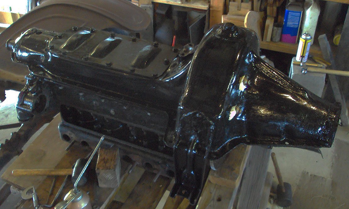 Finally I gave the assembly a good coat of enamel in hopes that will do some sealing. After cleaning the crankcase there were several patches of bare metal showing and the paint will help that.