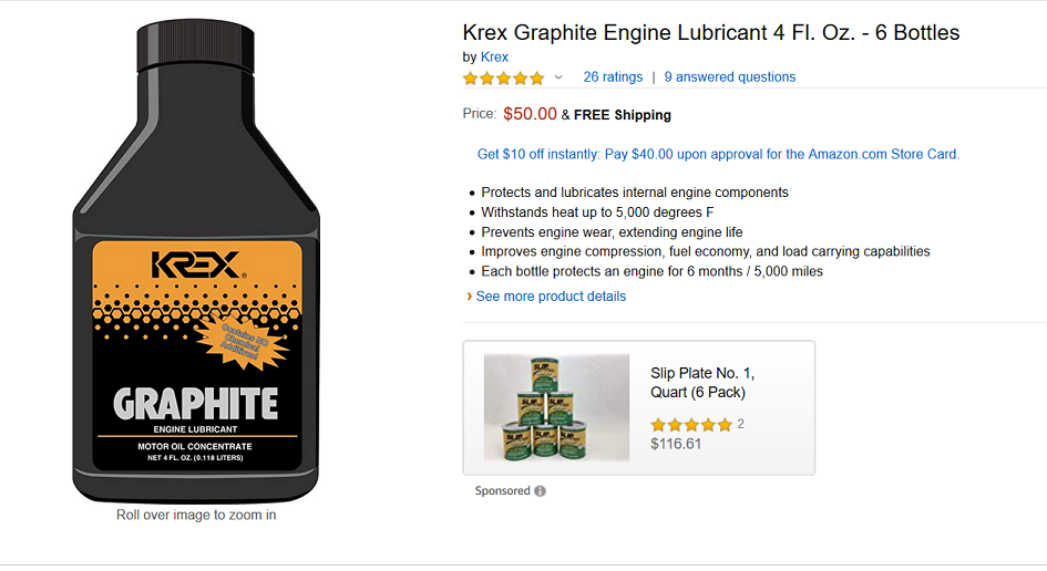 There was a motor oil with graphite called Krex being sold in the late 90’s or around 2000. I remember it being sold at a GM dealer I worked for.