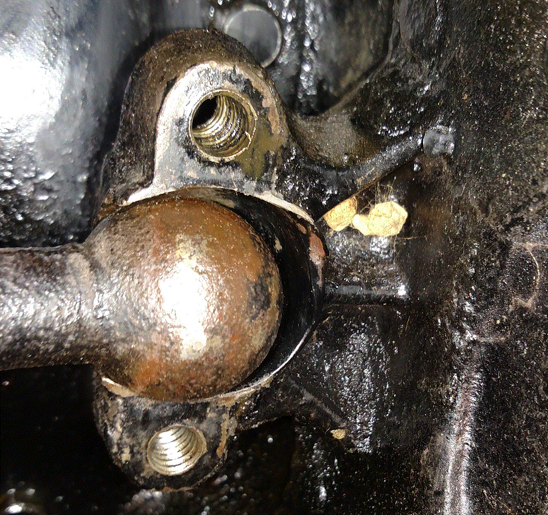 I just adjusted my rod beatings. I removed the inspection cover on a 4-dip pan which necessitated disconnecting the wishbone ball socket. When putting it all back together, the ball socket does not line up with the pan. It is about 3/8 of an inch off. Is this normal? Is there some type of trick to get the wishbone and pan to align? Thanks.