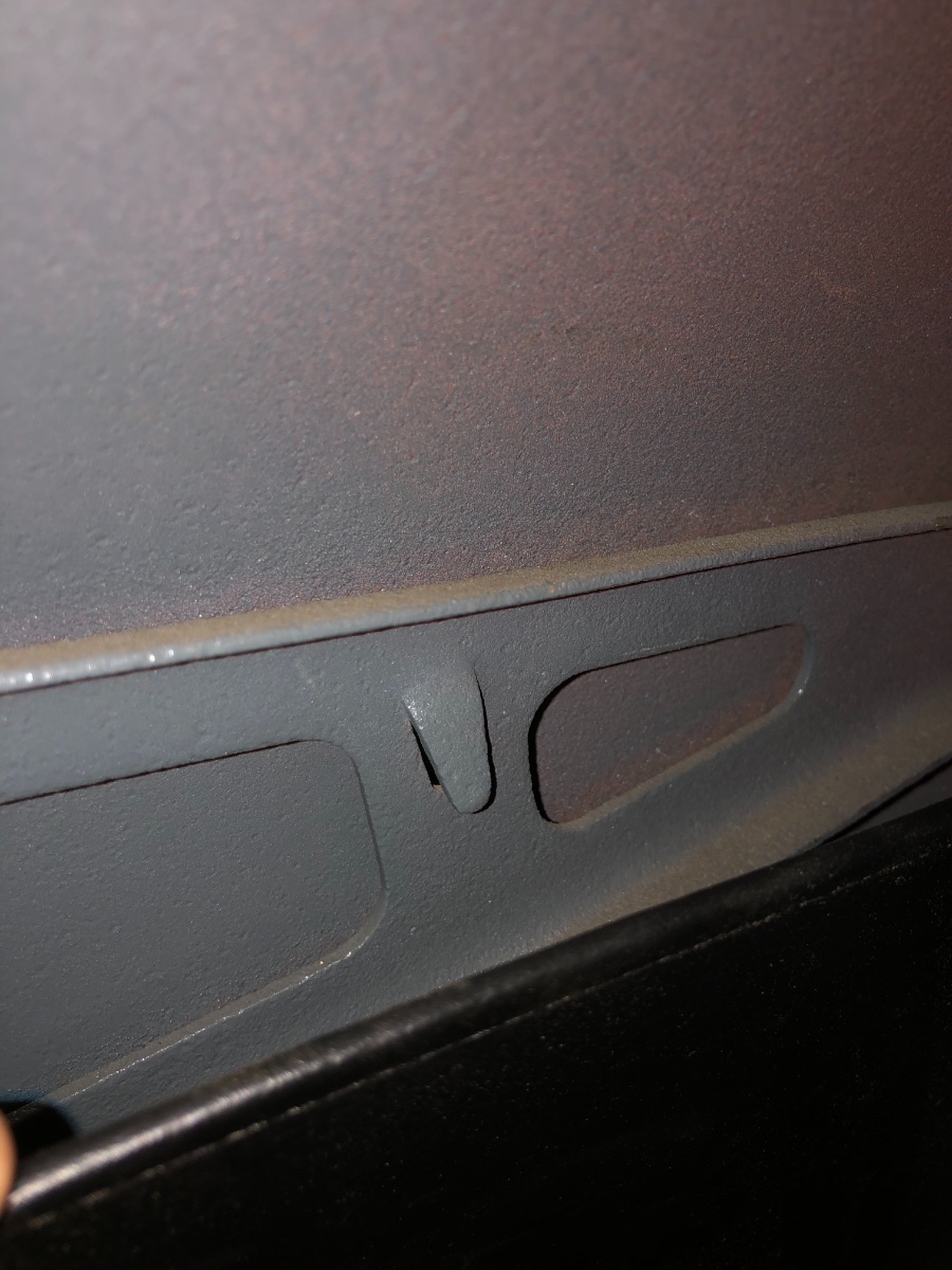 But yours has the upper arrow shaped tab, you’ll find two more of those on the floorboard riser inner edge.