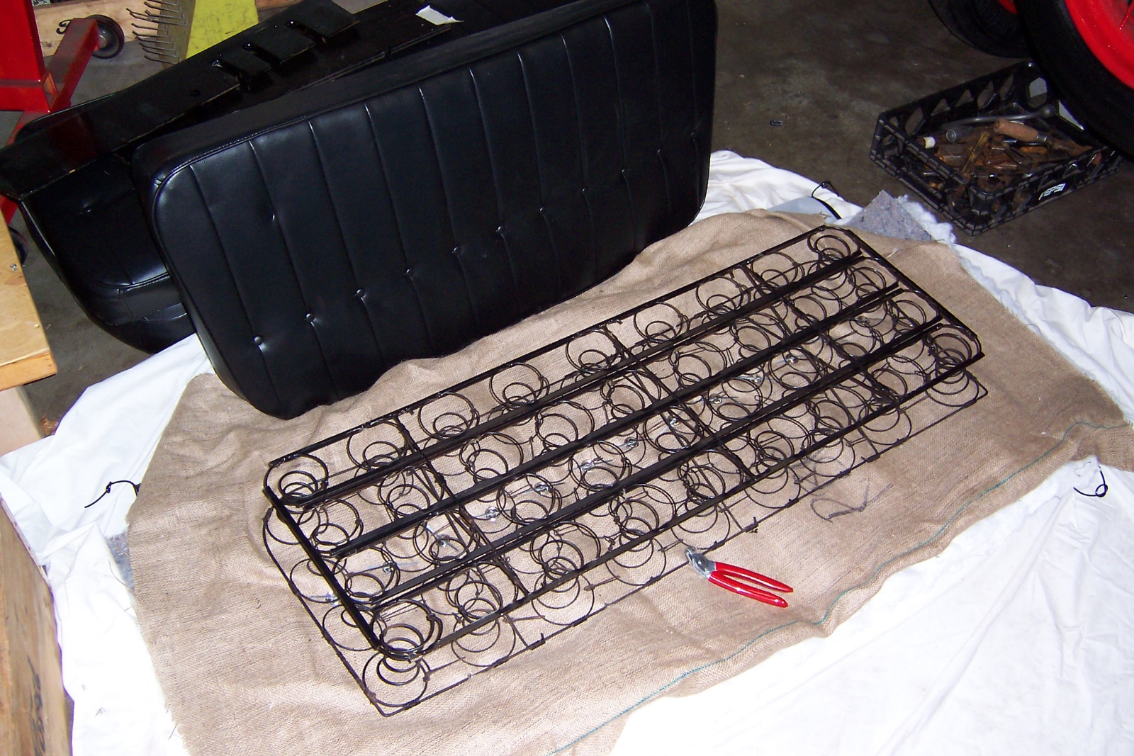 Front spring hung ready for upholstery, Rear backrest being placed.