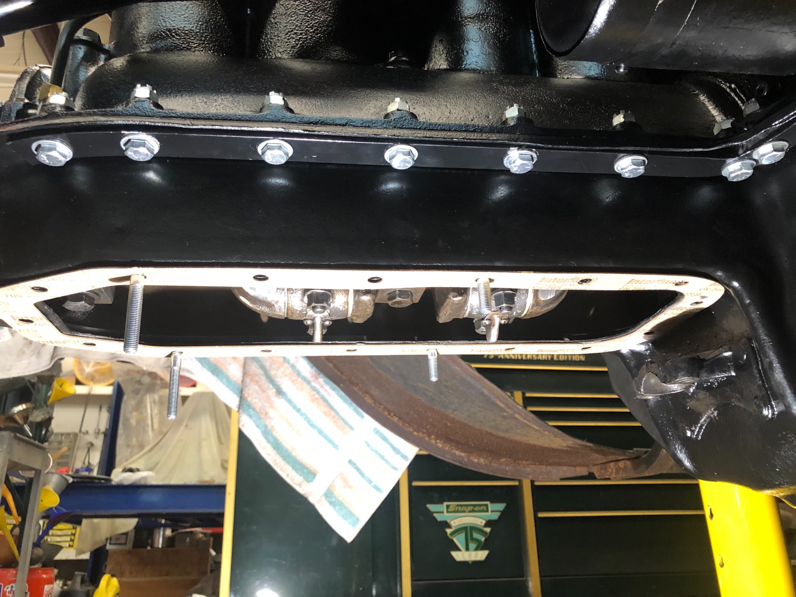 Some more simple tricks! Since time to time we need to remove the oil pan inspection plate and the transmission top cover, I normally use 3M Super Weatherstrip Adhesive or Permatex Ultra Black and glue one gasket to the pan/hoghead and another gasket to the metal cover plate. Give a light coat of Vaseline to marry the gaskets in the center and they do not leak and are reusable many times.