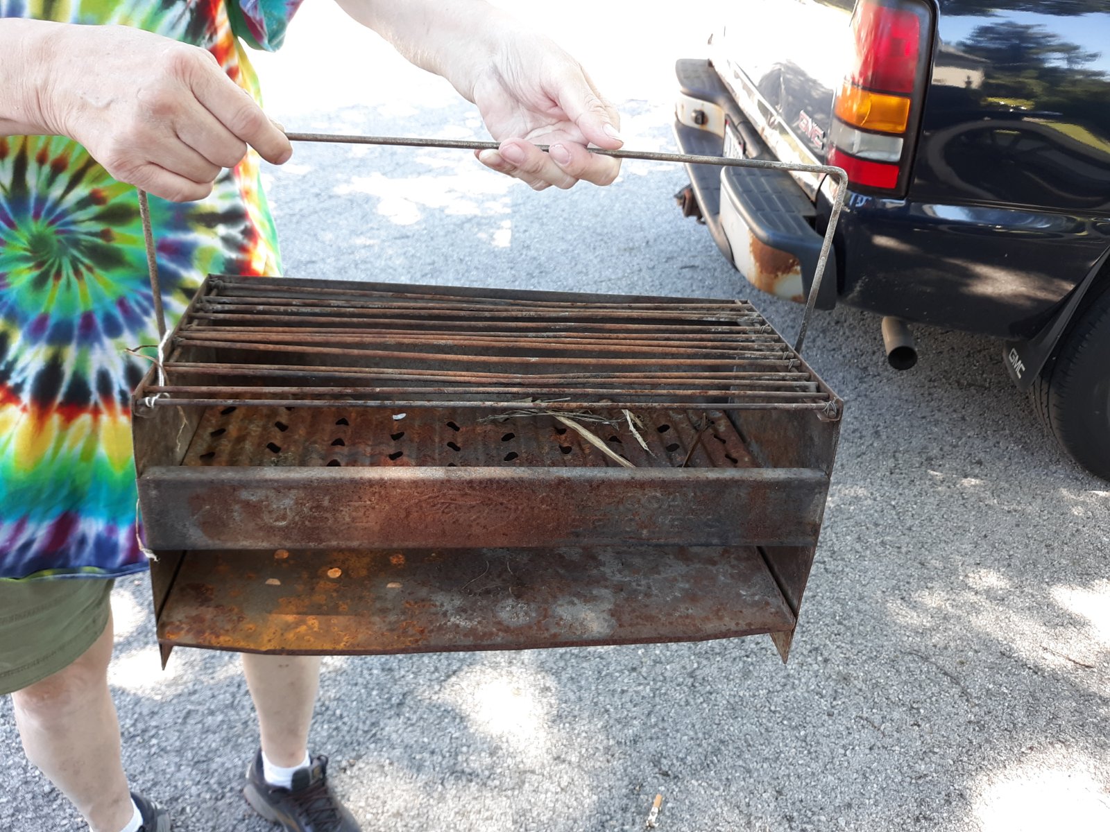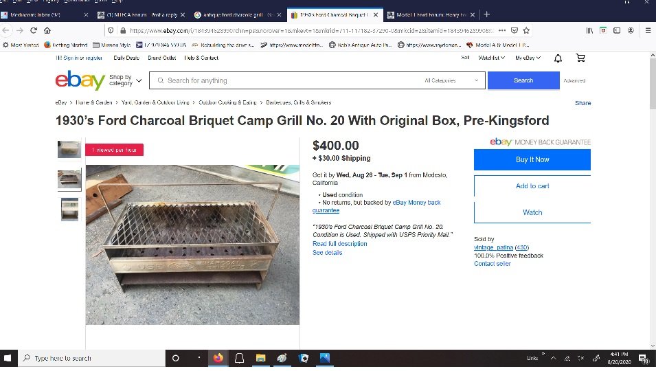 Actually, there was a car show there and a guy was admiring my car and said he had something with "Ford" on it in his garage and that he would GIVE it to me. This arrived in the mail. I had to replace the center grate with an old wash board I cut and drilled. I then cooked a hot dog on it once.