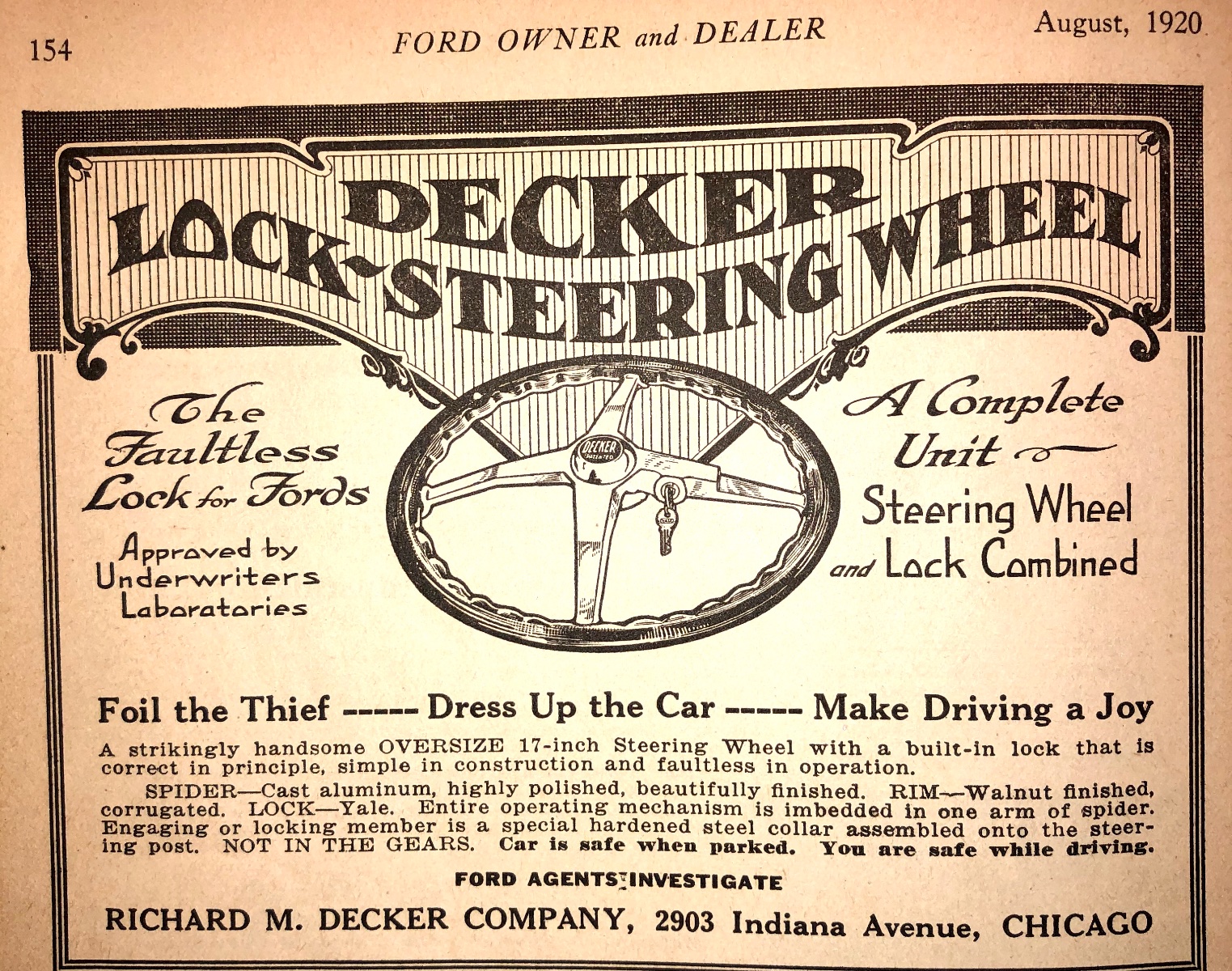 I ran across this photo taken in 1920. Besides being a great period photo, I noticed that this car has an unusual steering wheel. It looks like it might have a lock and key in the front. Does anyone know for sure?