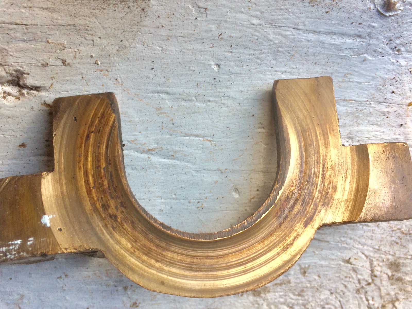 I dismantled a November 1919 engine to free it up for sale and found this. Removed the manifolds, head, tranny cover, crankcase, tranny and field coil. Problem was evidently in the 4th main. Anyway, was annoyed I couldn’t simply remove the cam gear cover. Upon further inspection I found this bronze piece bolted to the engine and crankcase on both sides of the crankshaft behind the crank pulley. It looks store bought with the Pat’d numbers and wear from the pulley. But the tin piece under it appears homemade. I surmise it was installed to bring the crankshaft forward thereby bringing the magnets closer to the field coil ??
