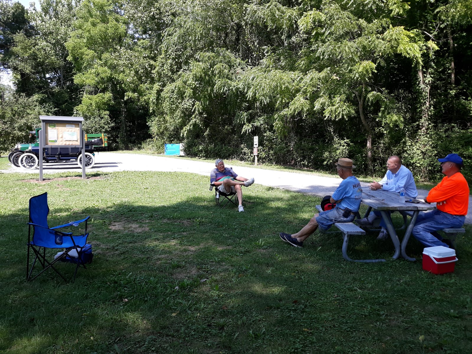 We finally got much needed rain yesterday and a little bit this morning. So off 5 of us went for another "Covid picnic tour". Perfect day. Finished up just as the heat and mugginess rolled in. Had our usual picnic, followed by about a 45 minute scenic drive to the village of Milan, got ice cream of course while solving world issues and entertaining a few onlookers. This village has a quaint square with picnic tables and benches for spacing ourselves. Perfect day. Next Tuesday we'll be doing a good 5 hour tour along the lake with the usual stops. Of course gotta document with pics!