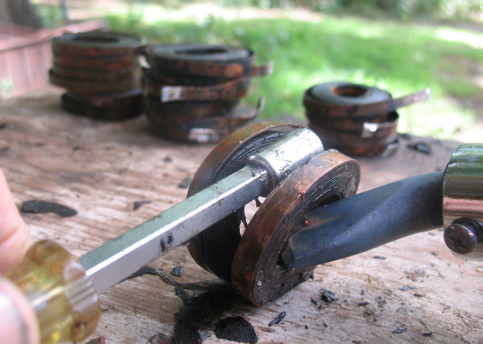 I'm plugging away at that decrepit mag coil ring. I just acquired a soldering iron that seems hot enough, so today I was separating coils.