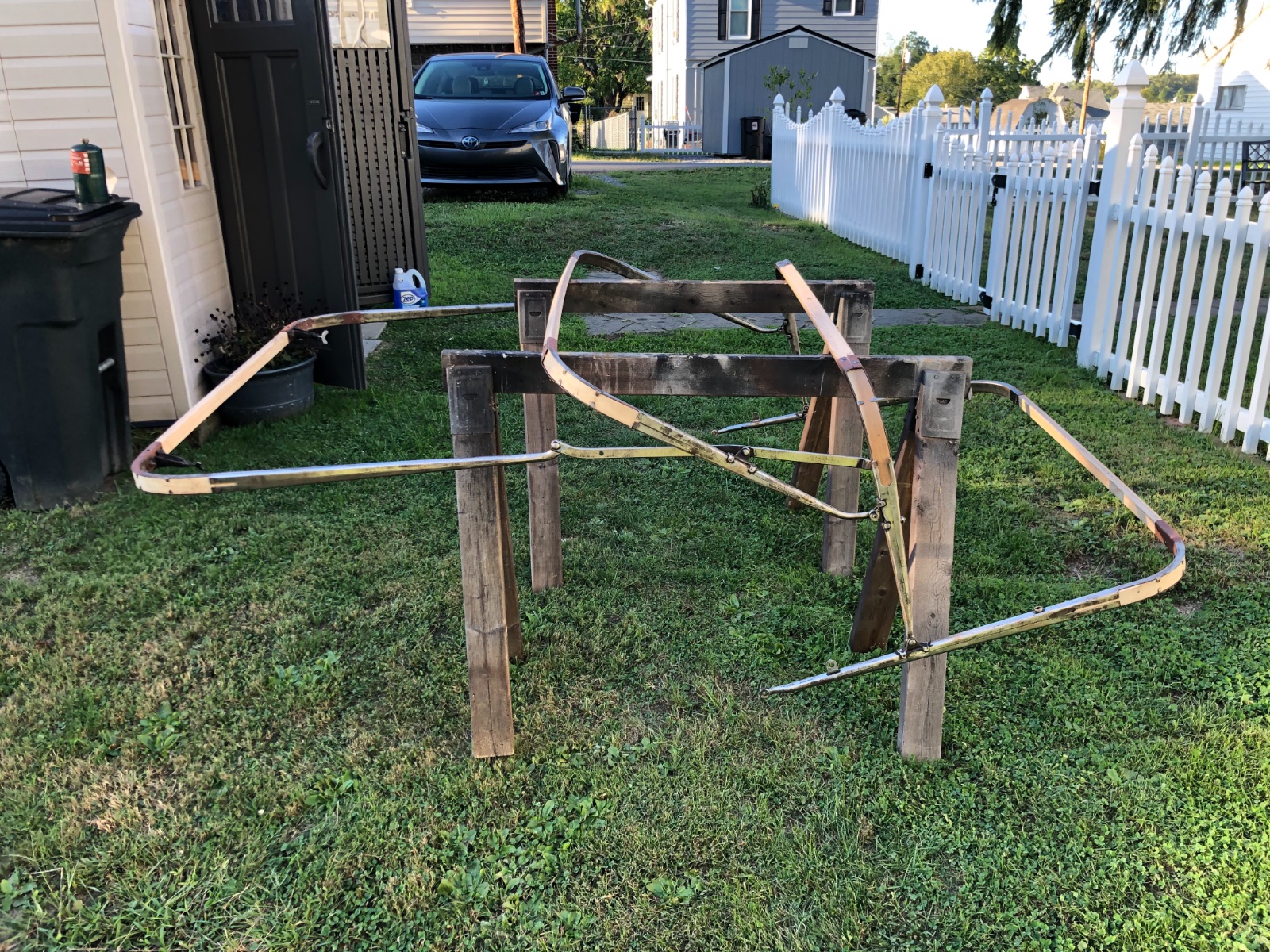 Today was like Christmas with all the packages being delivered. I got my top kit and rear backrest from Classtique and the belt rail and hardware from Snyder’s. Surprisingly, there wasn’t much fitting involved with the belt rail. I did have to move two bolt holes and enlarge the rest. I also had to fabricate the rounded ends of the arm rests and then smooth out the transitions between the individual pieces. Other than that, the kit basically fits right out of the box. I also decided to give everything behind the upholstery and the under seat pan a coat of rusty metal primer and semi gloss enamel.