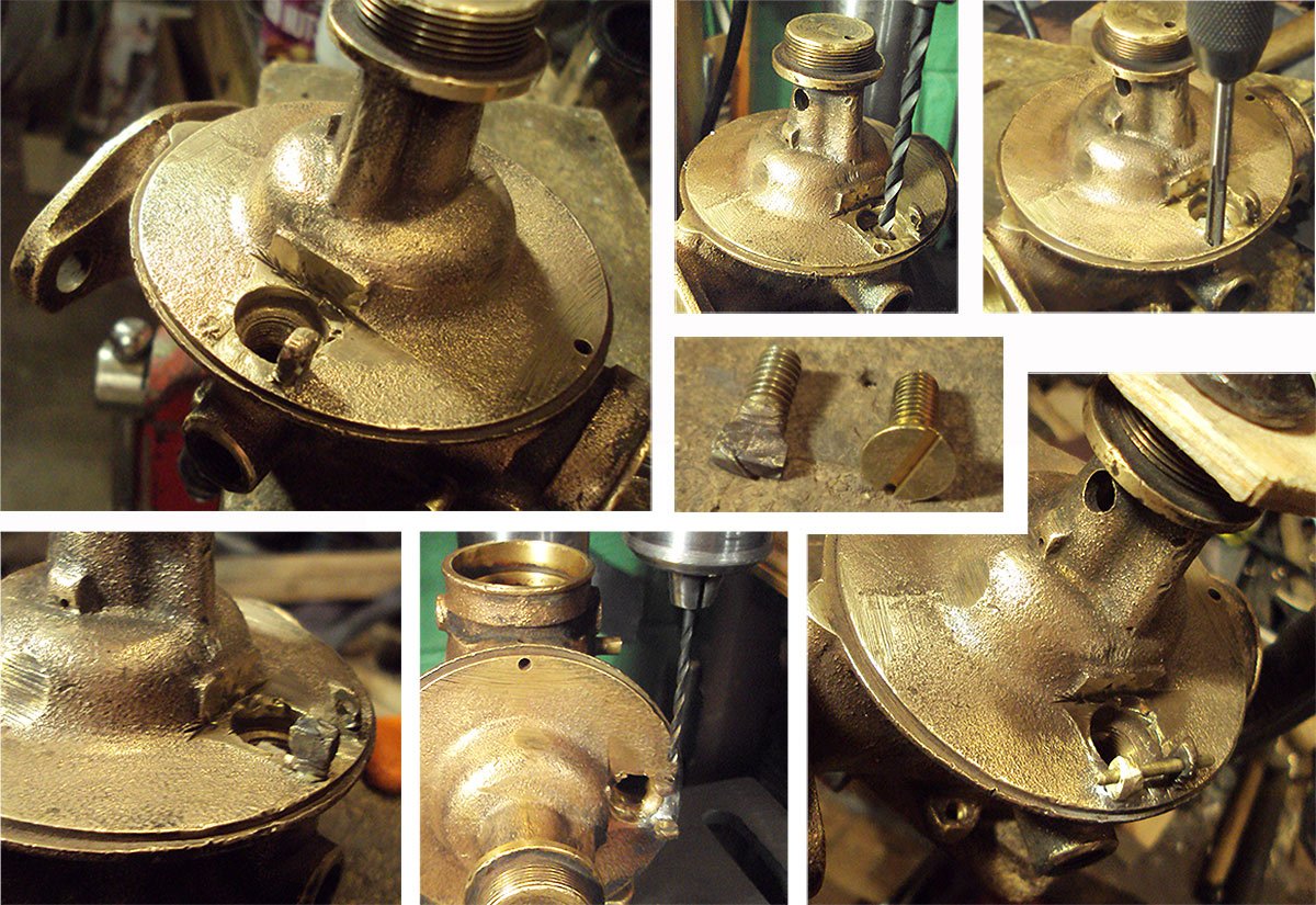 Today I tackled the Holly with the missing float pin arm. Drilling and tapping (10-32) a hole allowed me to screw in a screw with a smashed end. I soldered it and then drilled and shaped it.