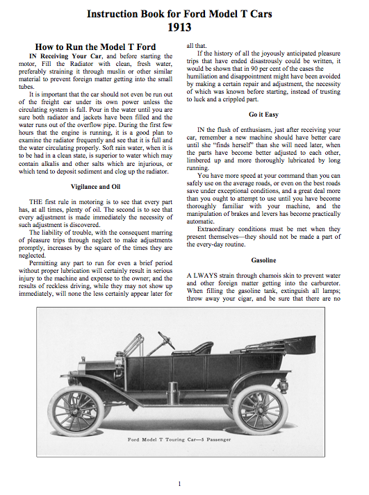 As Bill stated, the 1913 instruction book is a bit light on, May 13 and Sept 13 are 26 pages each. I have a 1914 Canadian Ford Manual which is 96 pages.